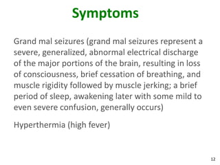 Hyperthermia is due to excessive thermal generation from muscle activity not to hypothalamic changes in the set point. Relieve anxiety irritability tension seizure disorders and induce anesthesia. The above signs are just the tonic phase of the seizure.